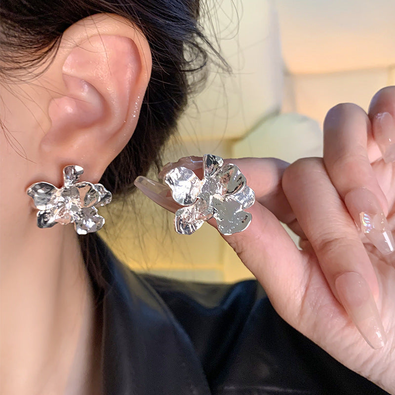 Silver Needle Retro Geometric Metal Earrings Female Niche Temperament